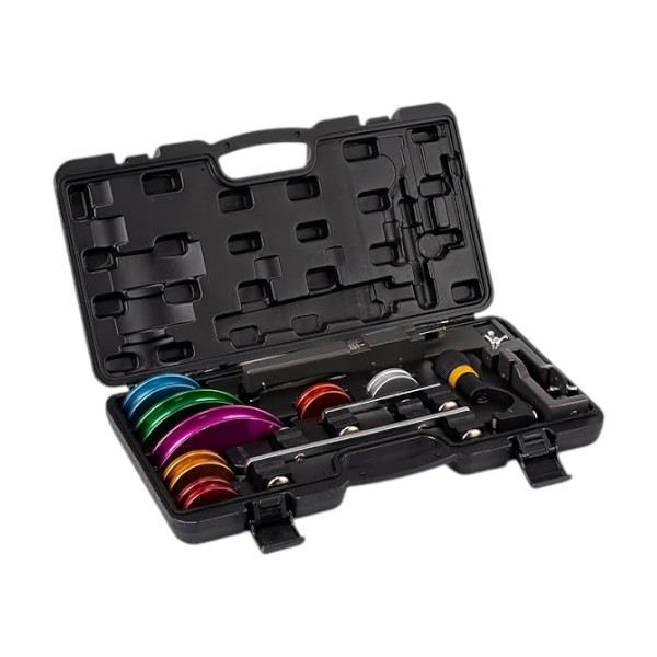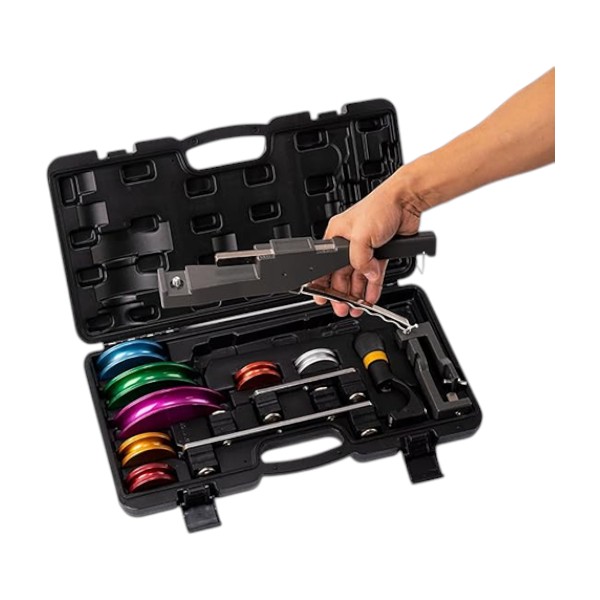 Herramienta profesional para doblar caños de cobre, aluminio, latón, acero inoxidable delgado y PVC de 1/4″ a 7/8″. Ideal para tareas de HVAC, refrigeración, aire acondicionado. Valija portátil para fácil transporte y almacenamiento.